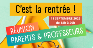 À l’occasion de cette rentrée scolaire, nous avons le plaisir de vous convier à la réunion Parents -Professeurs qui se tiendra jeudi (...)